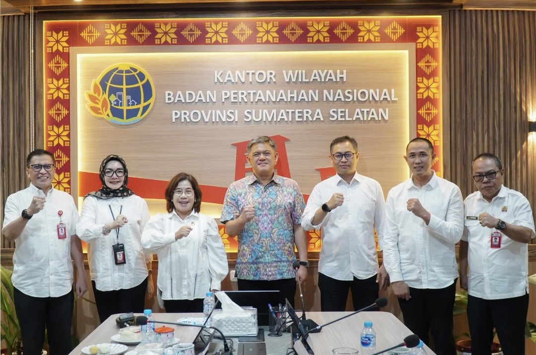 PALEMBANG – Kepala Kantor Wilayah (Kakanwil) Badan Pertanahan Nasional (BPN) Sumatra Selatan, Asnawati beserta Kepala Bagian Tata Usaha dan Kepala Bidang menyambut kedatangan Inspek Wilayah III Kementerian ATR/BPN, Lutfi Zakariah beserta jajaran, Kamis (4/12/2025).