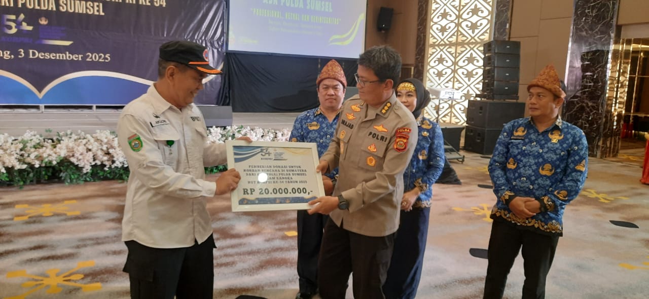 PALEMBANG – Dalam rangka memperingati Hari Ulang Tahun Korps Pegawai Republik Indonesia (Korpri) ke-54, Polda Sumatera Selatan menggelar kegiatan doa bersama sekaligus aksi kemanusiaan dengan mengumpulkan donasi bagi para korban bencana alam yang terjadi di Sumatera Utara, Aceh, dan Sumatera Barat.